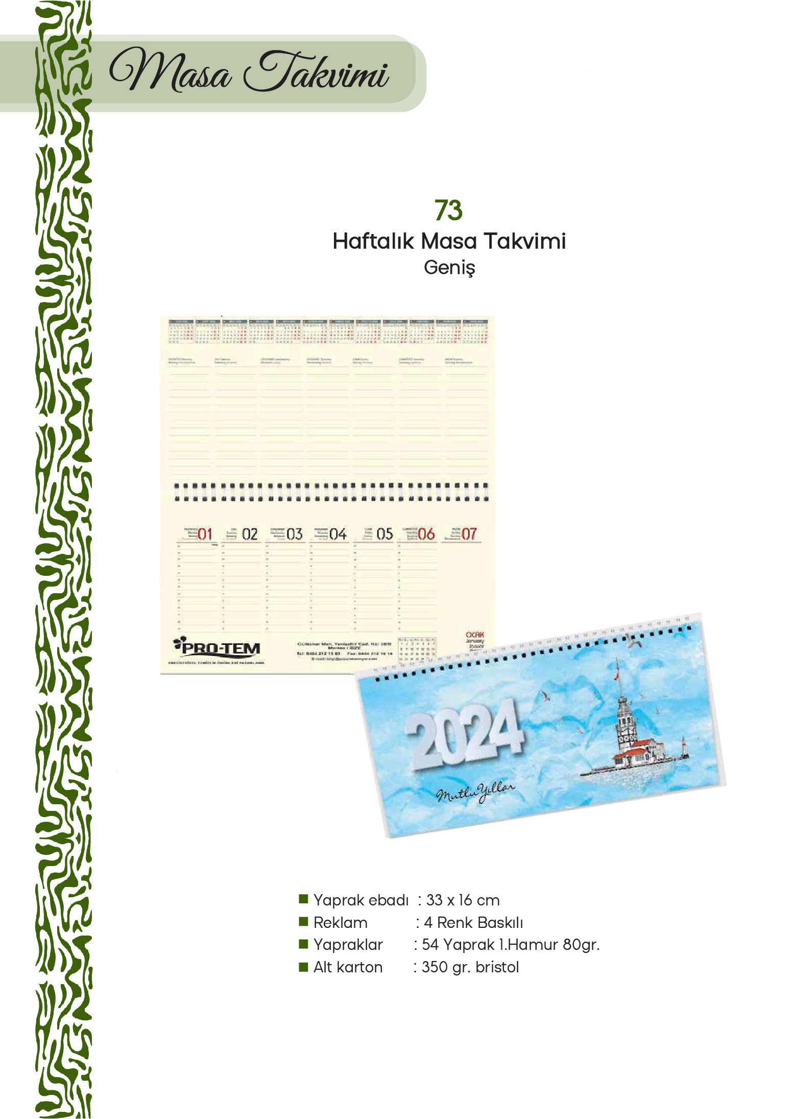 73 - Haftalık Masa Takvimi (Geniş)