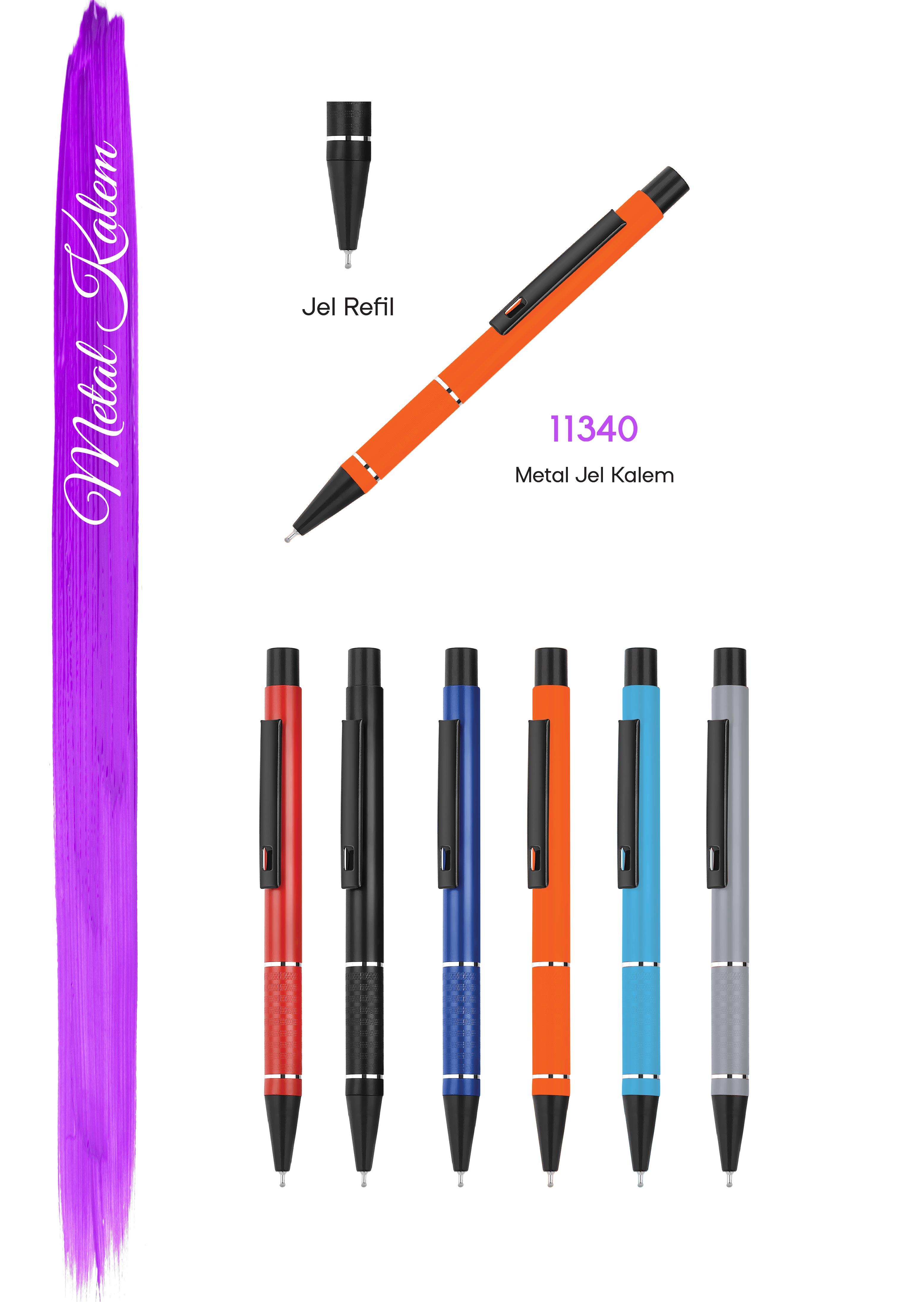 11340 - Metal Tükenmez Kalem (Jel Refil)